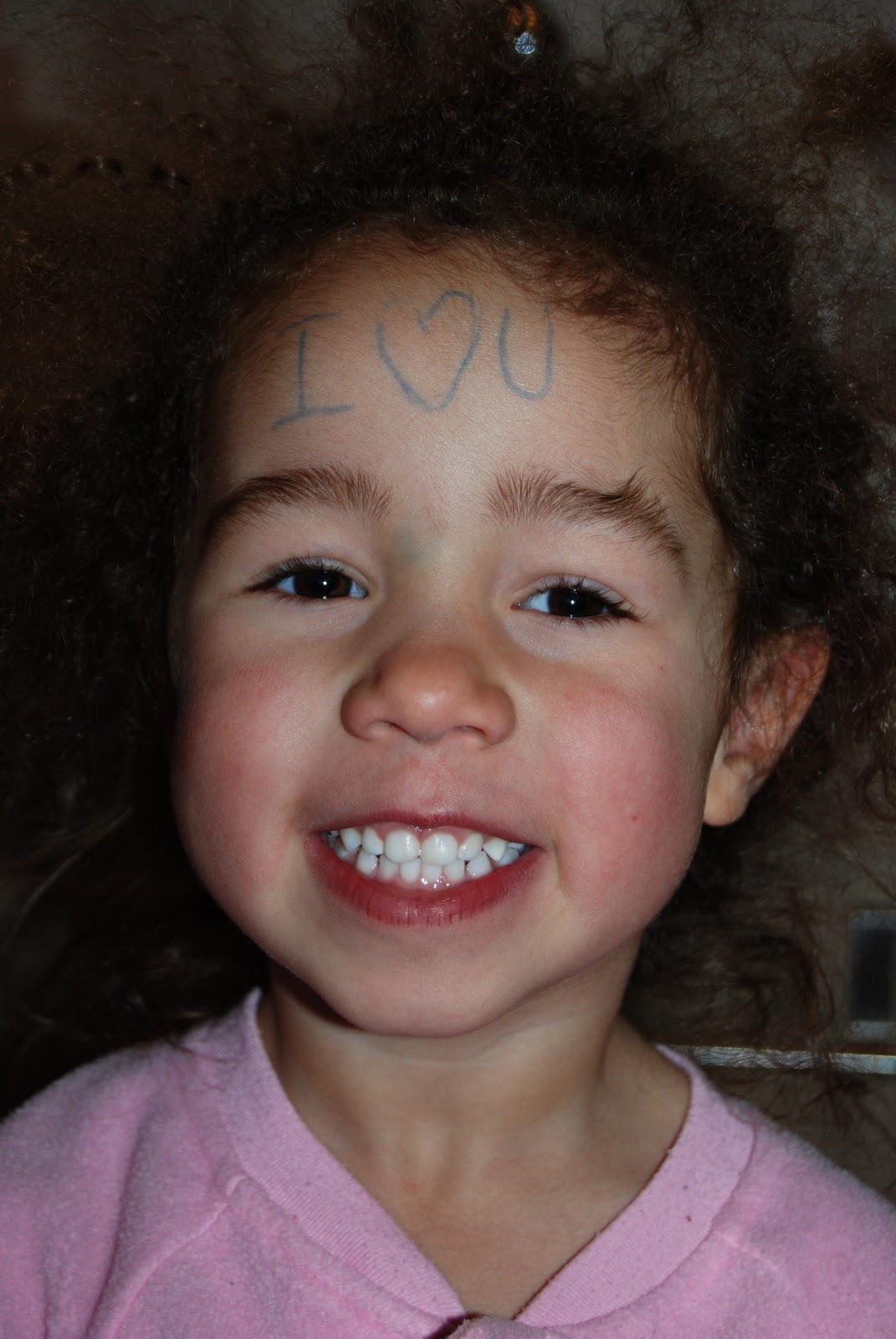 It said, I love you more but it must have rubbed off while she was sleeping, dang baby!!